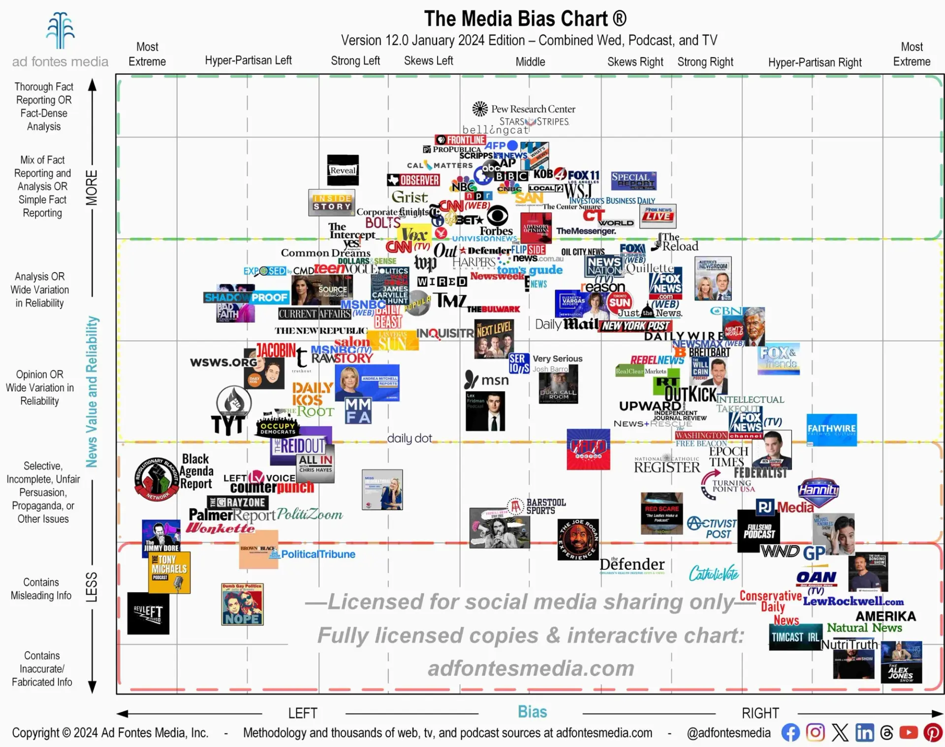 هذا الرسم التوضيحي يبدو لي دقيقاً لدرجة كبيرة في تصنيف الإعلام الأمريكي، هناك شارت تفاعلي له كذلك.