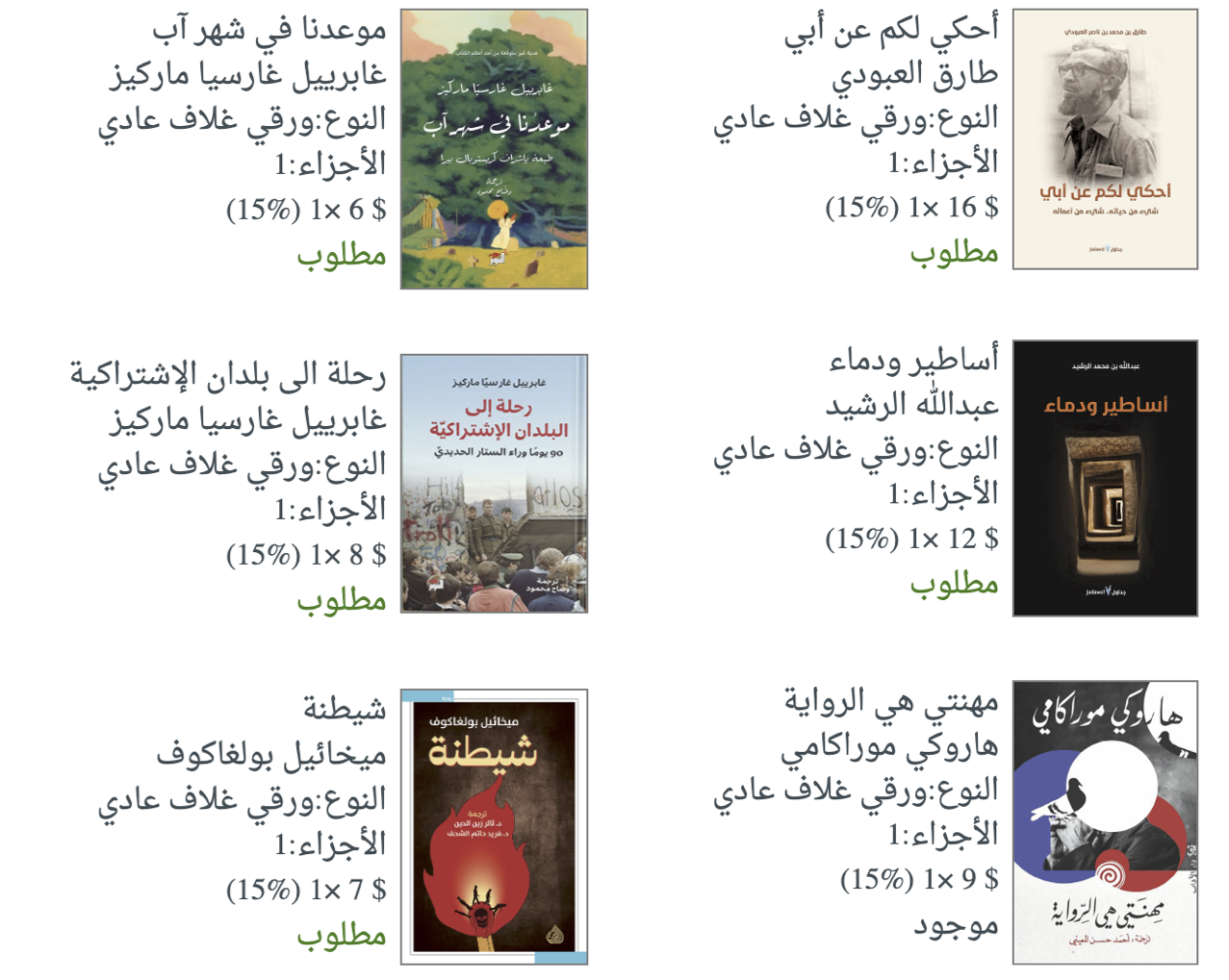 طلبت هذه الكتب الستة من النيل والفرات، بعد الطلب اكتشفت أن خمسةً منها سيطلبونها وليست متوفرة عندهم بعد، لا بأس إذا كانت الشحنة ستصل خلال أسبوعين، سنرى!