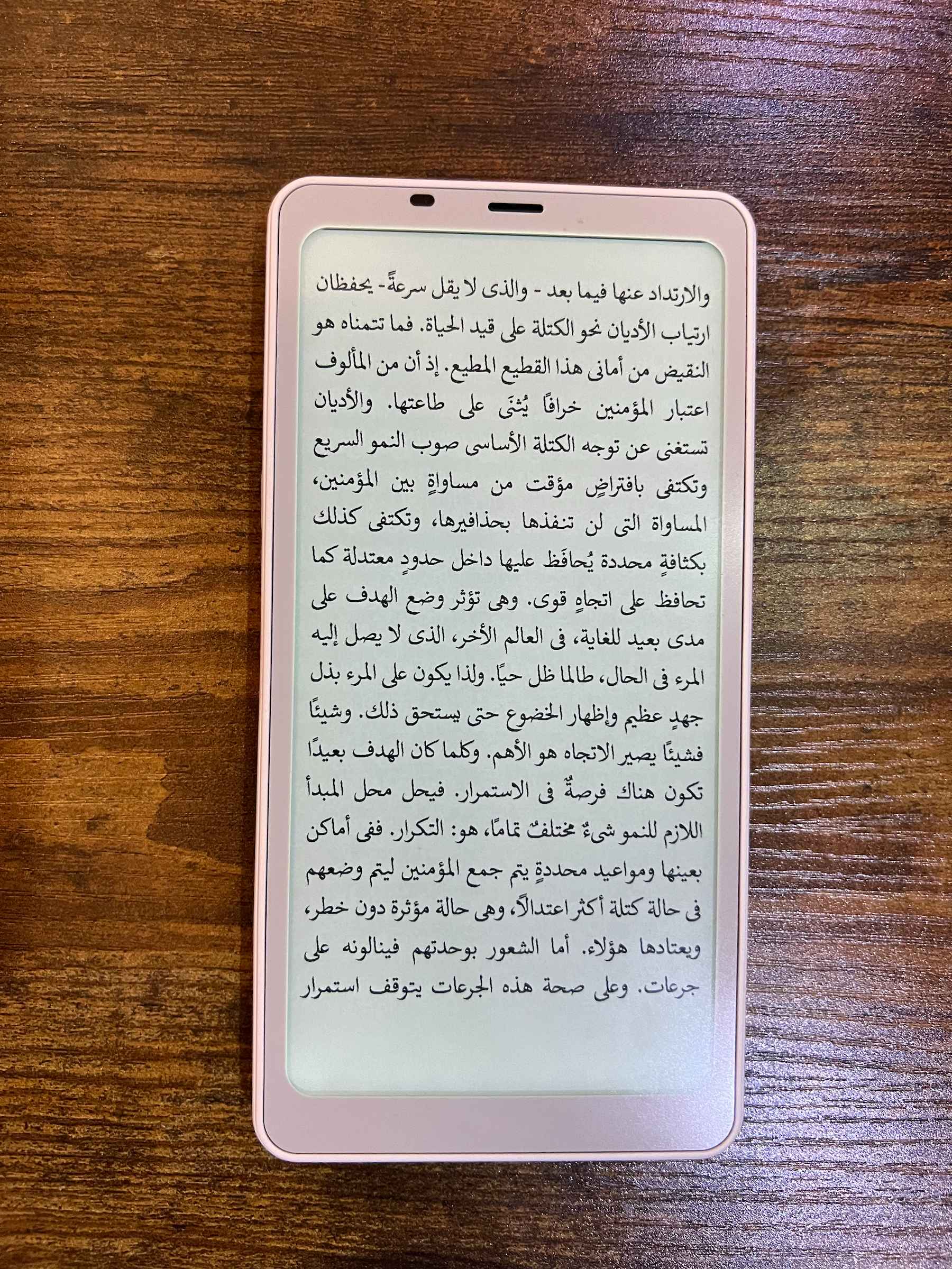 بقيت أمنيتي هذه معلقة حتى قبل أسبوع، حيث وصلني جهاز “Boox Palma”. كنت قد قرأت عنه مراجعات، وشاهدت مقاطع يوتيوب، ووجدت كل من اشتراه يشيد بسرعته الفائقة، وبوزنه الخفيف، وبشاشة الحبر الإلكتروني الأنيقة الواضحة، ويكادون يجمعون أن القراءة من خلاله توازي أو تفوق متعة القراءة على الكندل.
