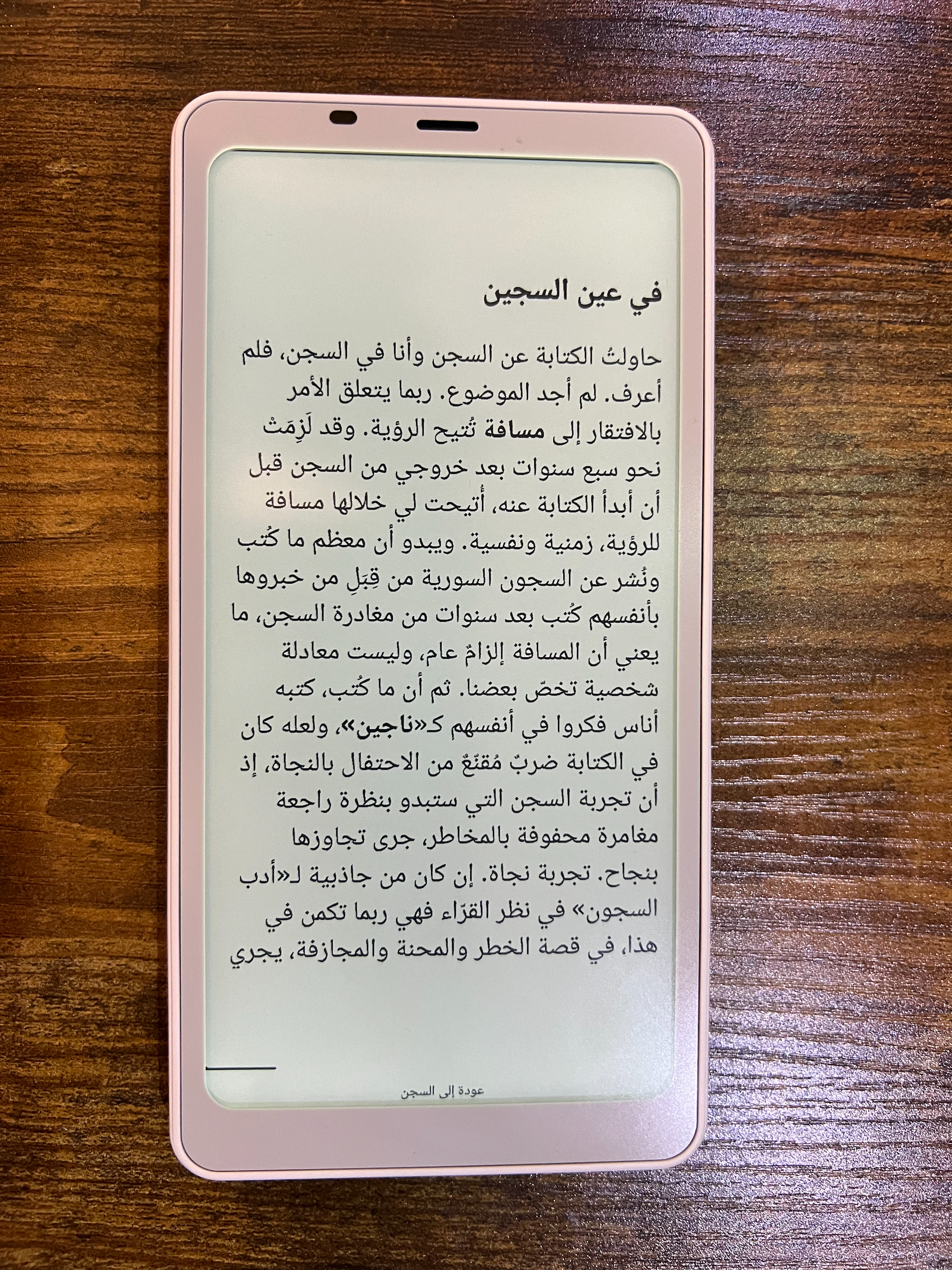 - القراءة المطولة: وكانت مريحة جداً لأن وزنه خفيف وحجمه مناسب لليد الواحدة مثل الآيفون، قرأت عبره من المقالات المؤجلة في أسبوع أكثر مما قرأت منذ شهور.