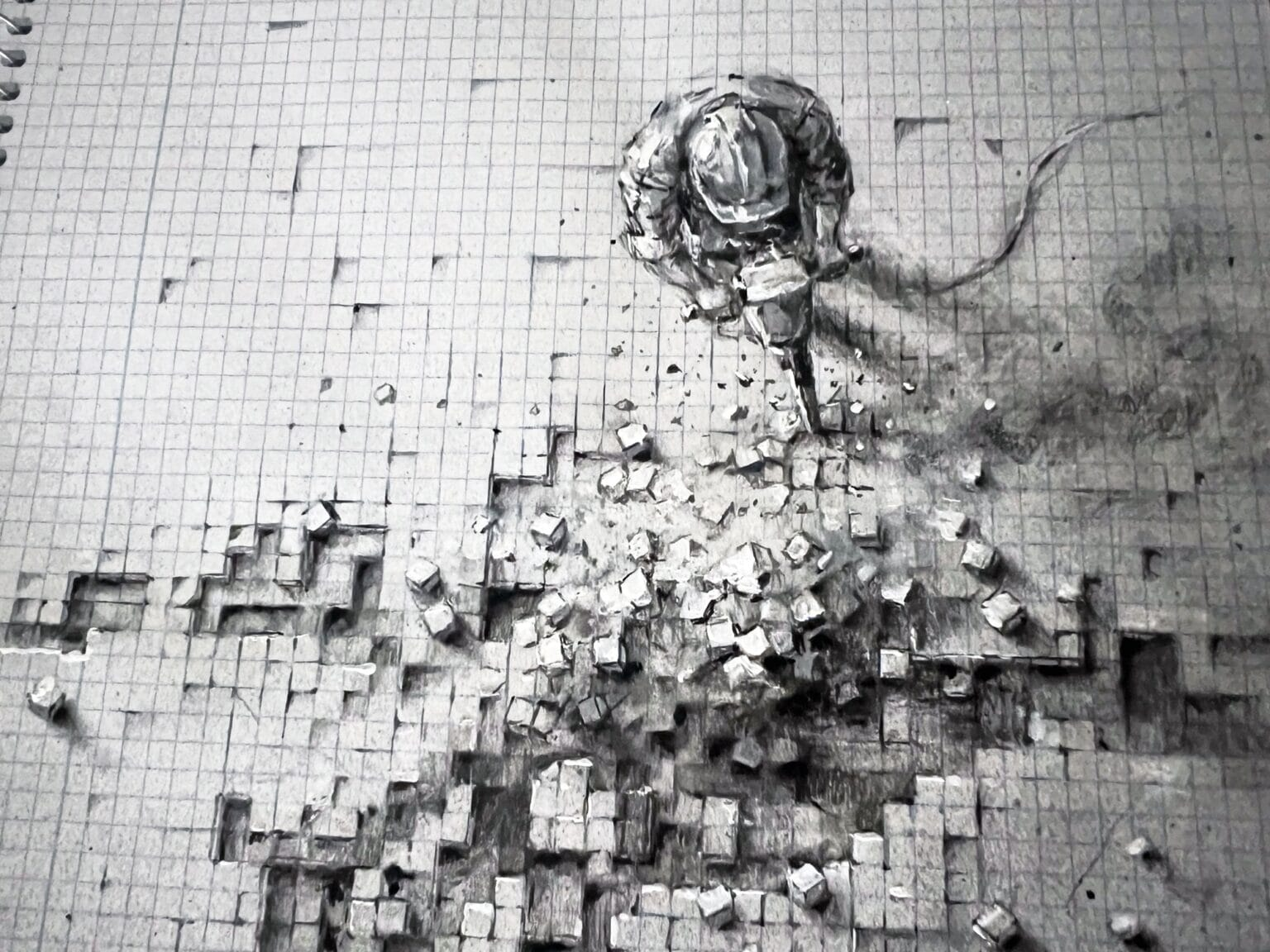 رسومات عجيبة على ورق الرسم البياني، يحوّل هذا الفنان الشبكة المسطّحة إلى مشاهد ثلاثية الأبعاد بالغرافيت وحده.