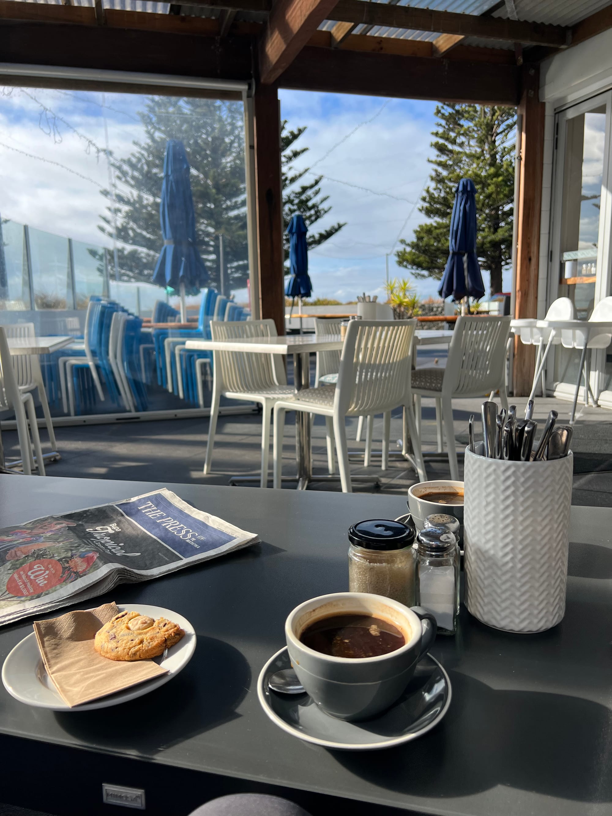 توقفنا مرتين خلال الطريق، أحدها لالتقاط صور في مكان رائع، والثانية للاستراحة في مقهى أنيق جداً، اشتريت منه كوب قهوة. الشيء شبه الوحيد الذي أشتريه من كل مدينة أمر بها هو كوب قهوة للذكرى.