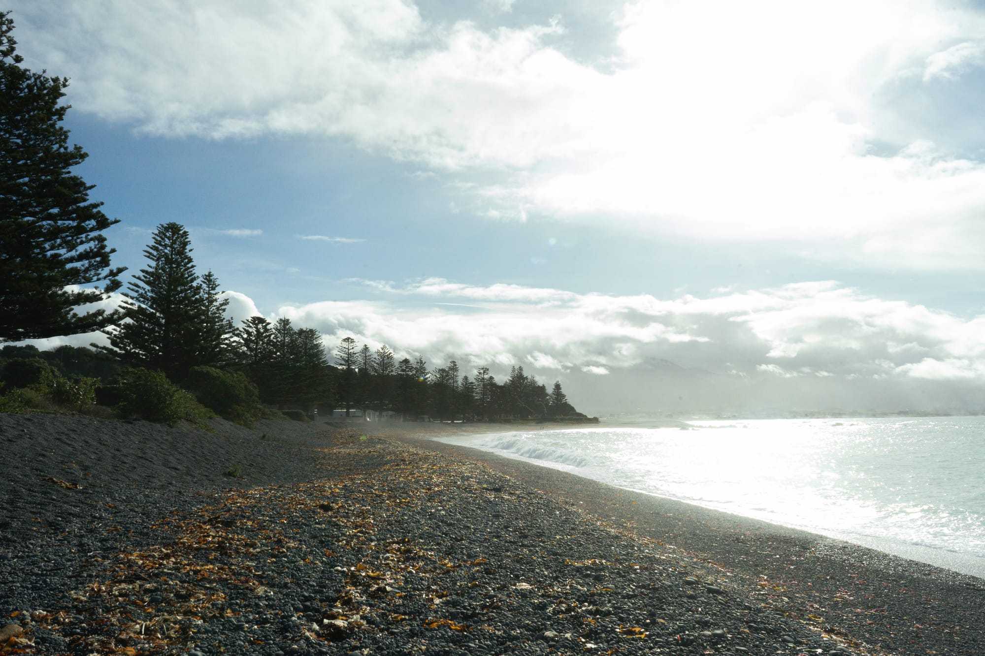 معظم أمس قضيناه في الطريق من Picton إلى Christchurch. يمر جزء كبير من هذا الطريق الساحر بجانب المحيط، إلى يسارنا جبال وغابات كثيفة، وعلى اليمين منظر البحر والصخور المتنوعة على الشواطئ.